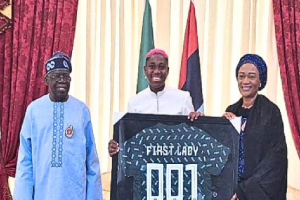 The Confederation of African Football (CAF) Women’s Player of the Year, Asisat Oshoala on Thursday, December 28, visited President Bola Tinubu and his wife, Oluremi at their home in Lagos.