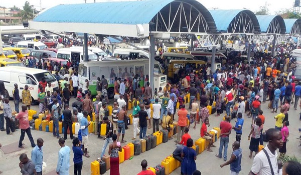 Many bus stops were filled with hundreds of stranded passengers while roads hosting some filling stations that dispensed petrol witnessed gridlocks caused by desperate drivers.