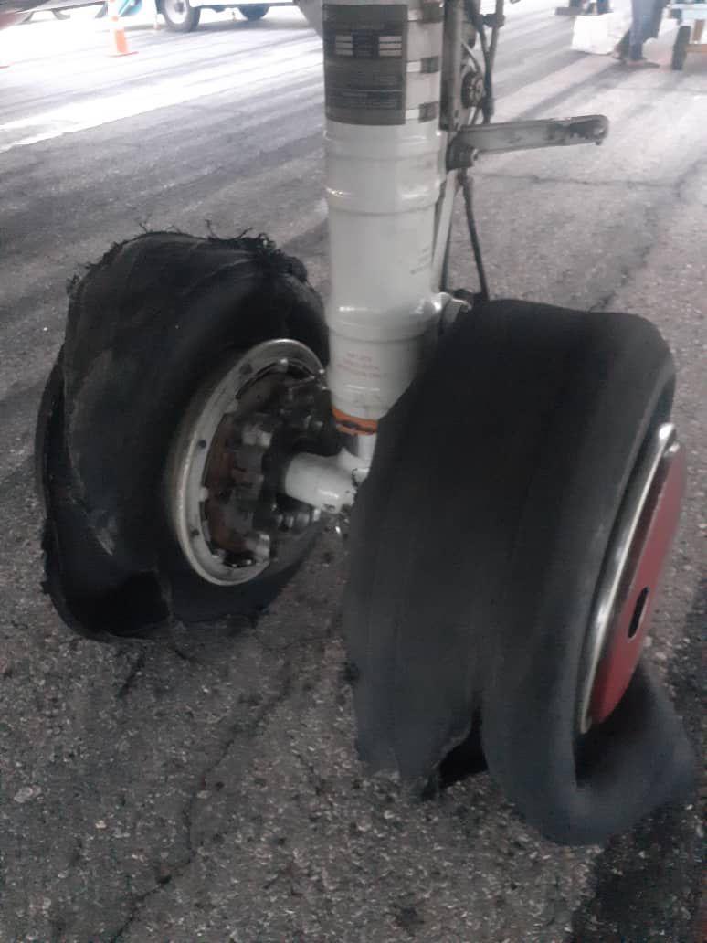 The Max Air aircraft carrying 119 passengers and six crew members, was cleared for takeoff before its first rear gear tyres burst, while the remaining two also went the way of the initial one while attempting to taxi off the aircraft from the runway.